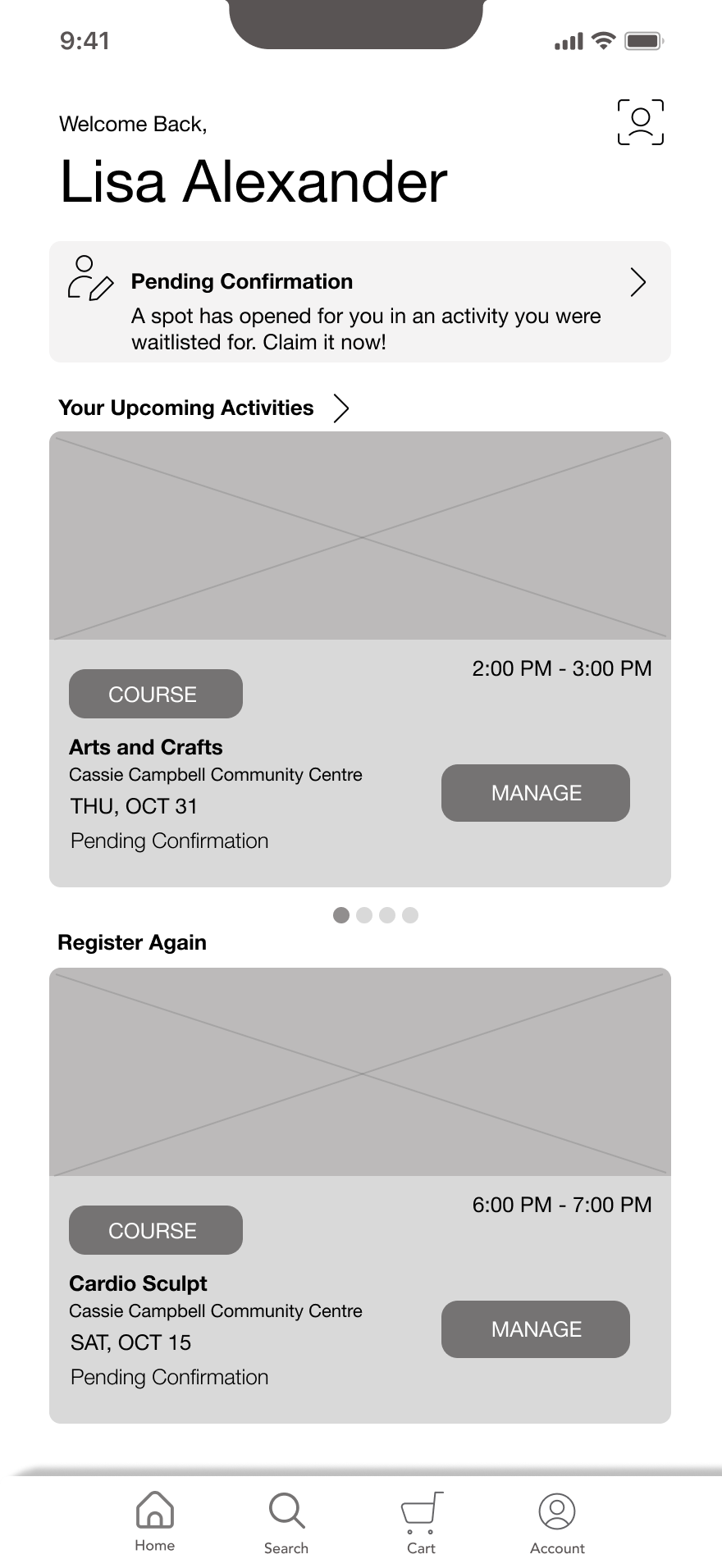 I incorporated the team’s feedback and Brampton Recreation's visual identity into the high-fidelity wireframes, creating a polished interface ready for development.